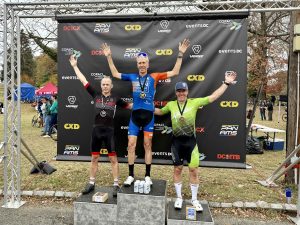 Once I connected, I put in an immediate attack to see if either one of them would show any weakness. I led for a bit but was unable to create a gap, so I led David take over the lead. Going into the final lap, I attacked again and pushed as hard as I could. David squeezed by me about halfway around the lap, and then we started to catch the leaders of the 50-55 race, which had started thirty seconds ahead of us. In the chaos, J.F. took the lead, and David and I were unable to bring him back. It was just one of the unfortunate things about having multiple groups racing at the same time. I finished in 3rd at 5 seconds back, but this was enough to make the podium!